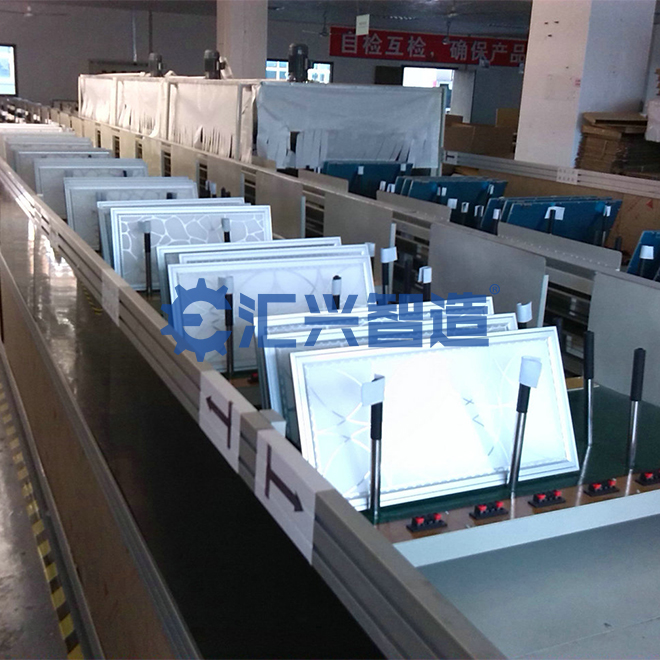 傳統(tǒng)的側(cè)面發(fā)光的LED面板燈只需將LED燈條用雙面膠固定于燈盤側(cè)面,現(xiàn)在越來越多企業(yè)選擇底部發(fā)光或者說正面發(fā)光的設(shè)計(jì),而這種設(shè)計(jì)需要將LED燈條通過膠水將其粘接固定于燈盤底部,有些工廠貼4條,6條,8條,或者更多,取決于每個(gè)公司產(chǎn)品的設(shè)計(jì),無論何種設(shè)計(jì),都涉及到打膠貼燈條的工序,這一工序如果通過人工來實(shí)現(xiàn),會(huì)出現(xiàn)打膠不均勻,速度慢,無法達(dá)到批量化生產(chǎn)的要求,耗費(fèi)較高人力成本的同時(shí),打膠粘接質(zhì)量也無法滿足產(chǎn)品質(zhì)量要求,所以引入自動(dòng)點(diǎn)膠機(jī)勢在必行。匯興智造根據(jù)市場需求,研發(fā)設(shè)計(jì)了此款LED面板燈多頭自動(dòng)點(diǎn)膠機(jī)。