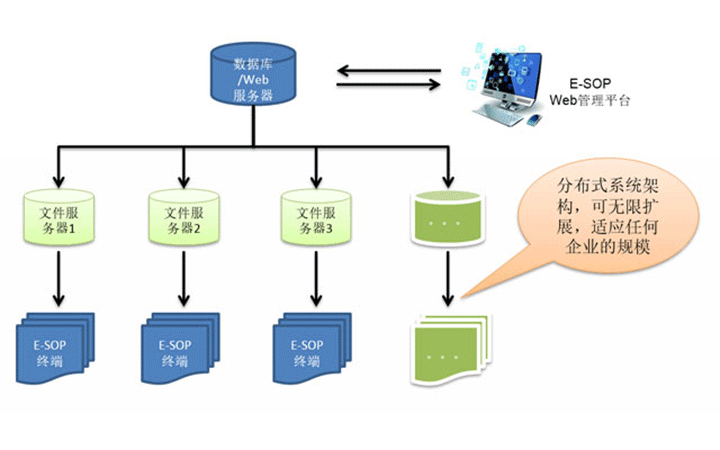 分布式的系統(tǒng)架構(gòu)和可擴(kuò)展的文件服務(wù)器體系讓匯興智造E-SOP適應(yīng)不同大小的企業(yè),從幾十個(gè)工位到幾萬個(gè)工位,任您搭配。