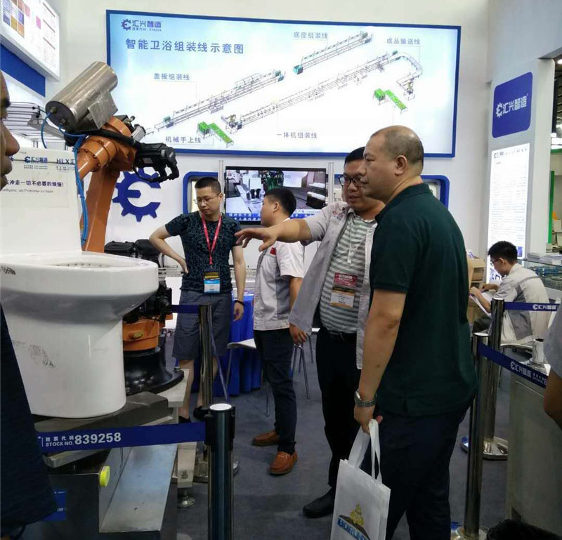 匯興智造展出的陶瓷衛(wèi)浴打磨機(jī)器人綻放異彩,從加工、組裝、噴涂、打磨、焊接、輸送等各種制造環(huán)節(jié)的機(jī)器人,到智能化、定制化的衛(wèi)浴生產(chǎn)線的應(yīng)用,深深地吸引參展觀眾的圍觀。
