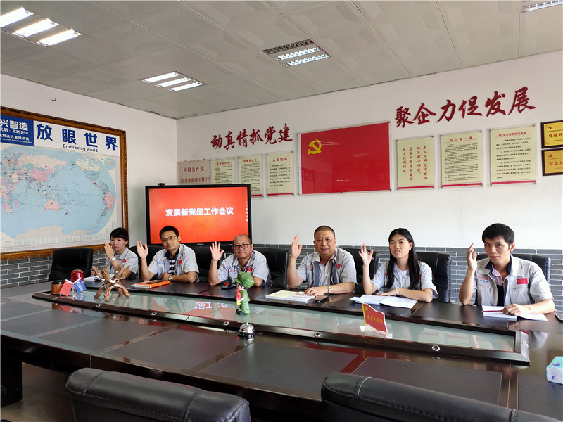 7月1日,為紀(jì)念中國(guó)共產(chǎn)黨建黨98周年,繼承和發(fā)揚(yáng)黨的光榮傳統(tǒng),進(jìn)一步發(fā)揮黨建引領(lǐng)作用和黨員的先鋒模范作用,以黨員帶動(dòng)群眾,中國(guó)共產(chǎn)黨廣東匯興精工智造股份有限公司支部委員會(huì)(簡(jiǎn)稱:匯興智造黨支部)組織開展“七一”黨建主題活動(dòng)。匯興智造黨支部在黨員活動(dòng)室召開“發(fā)展新黨員工作會(huì)議”,討論發(fā)展袁侃和蔣明華兩位同志為入黨積極分子,黨支部成員悉數(shù)參加會(huì)議。