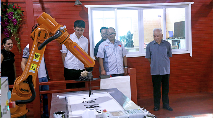 中國工程院孫玉院士一行參觀機(jī)器人寫書法