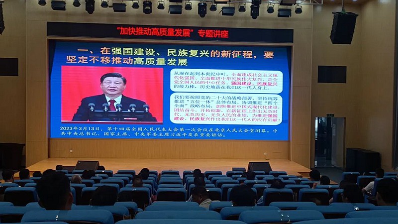 講座邀請(qǐng)了廣東省委黨校(廣東行政學(xué)院)原副校長(zhǎng)、教授陳鴻宇授課,重點(diǎn)圍繞高質(zhì)量發(fā)展的內(nèi)涵與理論邏輯、“四個(gè)必須”、廣東實(shí)踐、以及“百千
